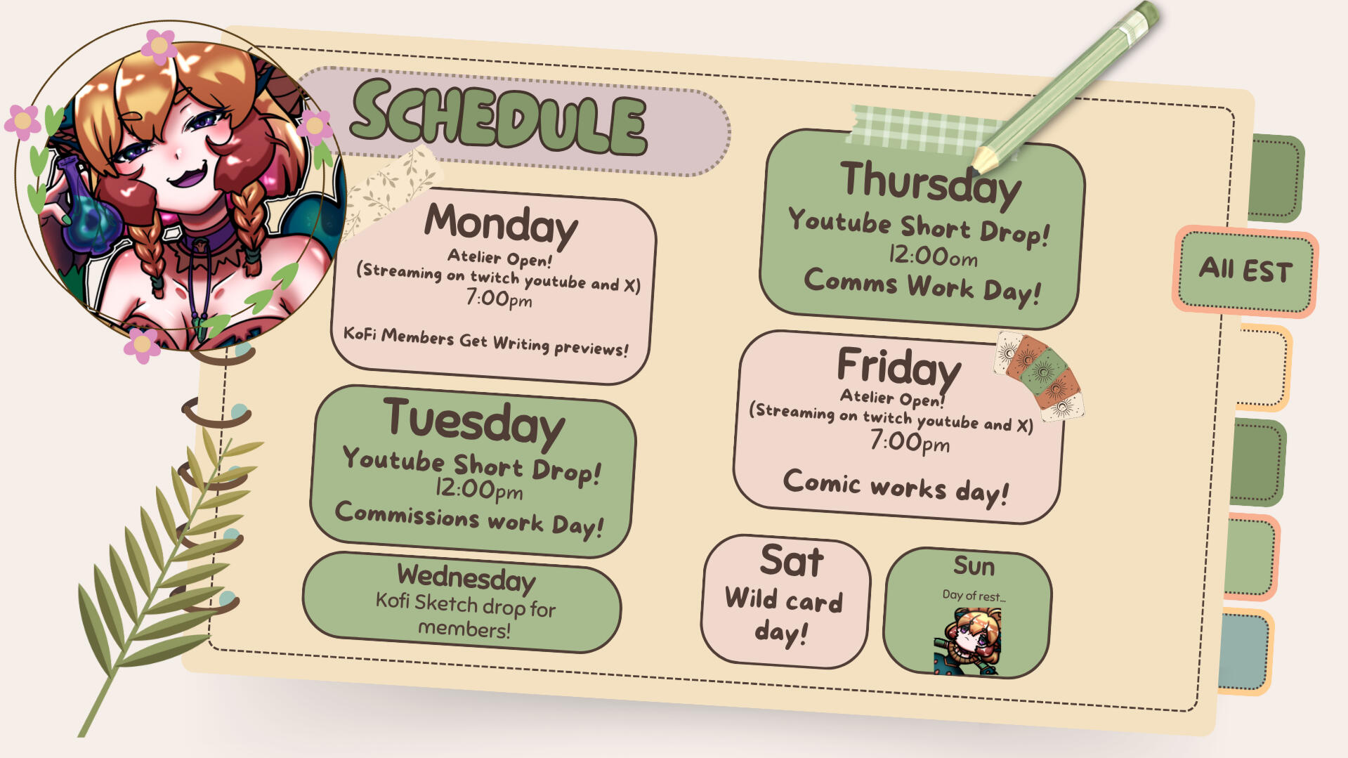 Unfortunately I have trigeminal neuralgia, so keeping a schedule can be pretty hard. But I'll try my best to commit to what I set out to do!